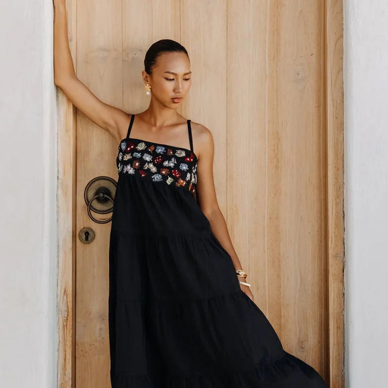 - Ankle length maxi- Embroidery details- Elasticated at back- Adjustable straps