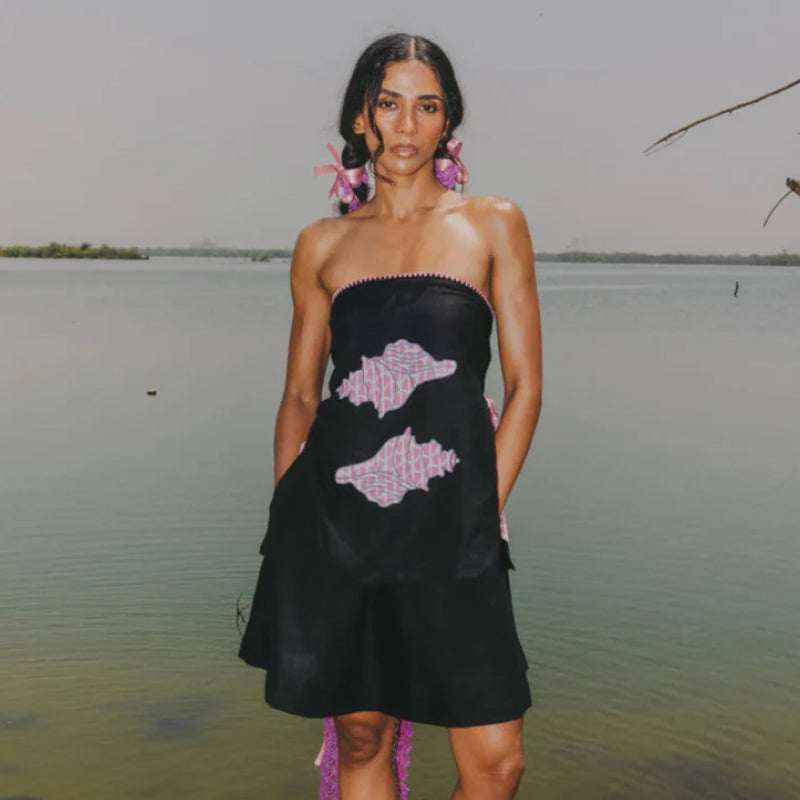View full detailsA bold yet breezy statement, the Kano Co-ord Set! It is crafted in pure linen and features a strapless top with hand-appliquéd shell motifs and con...