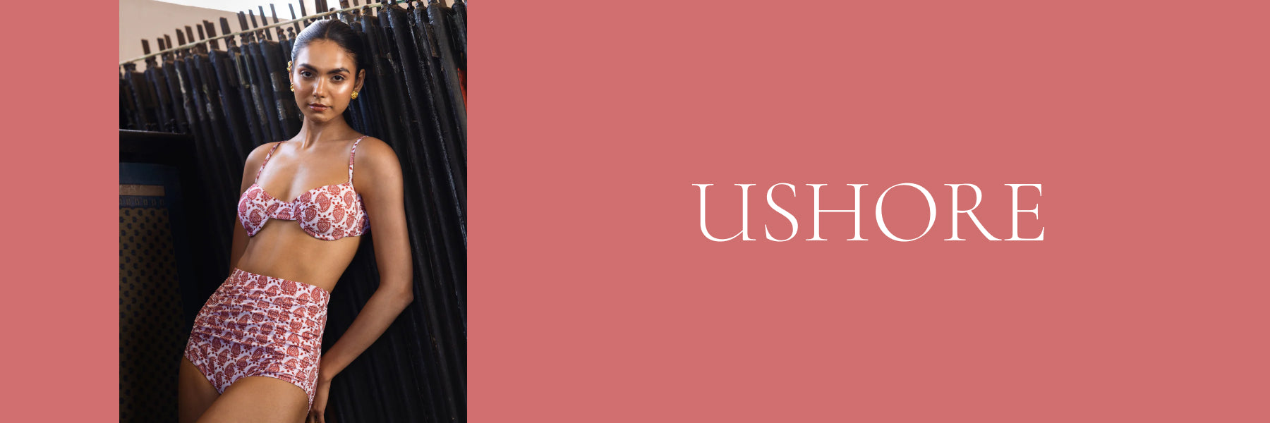 Inspired by Jaipur's iconic Sanganeri print, this bikini set blends tradition with effortless style. The bold red paisley motifs on an ivory base c...