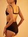 - Pairs with a beautifully draped bikini bottom which is a fresh take in the swimwear industry